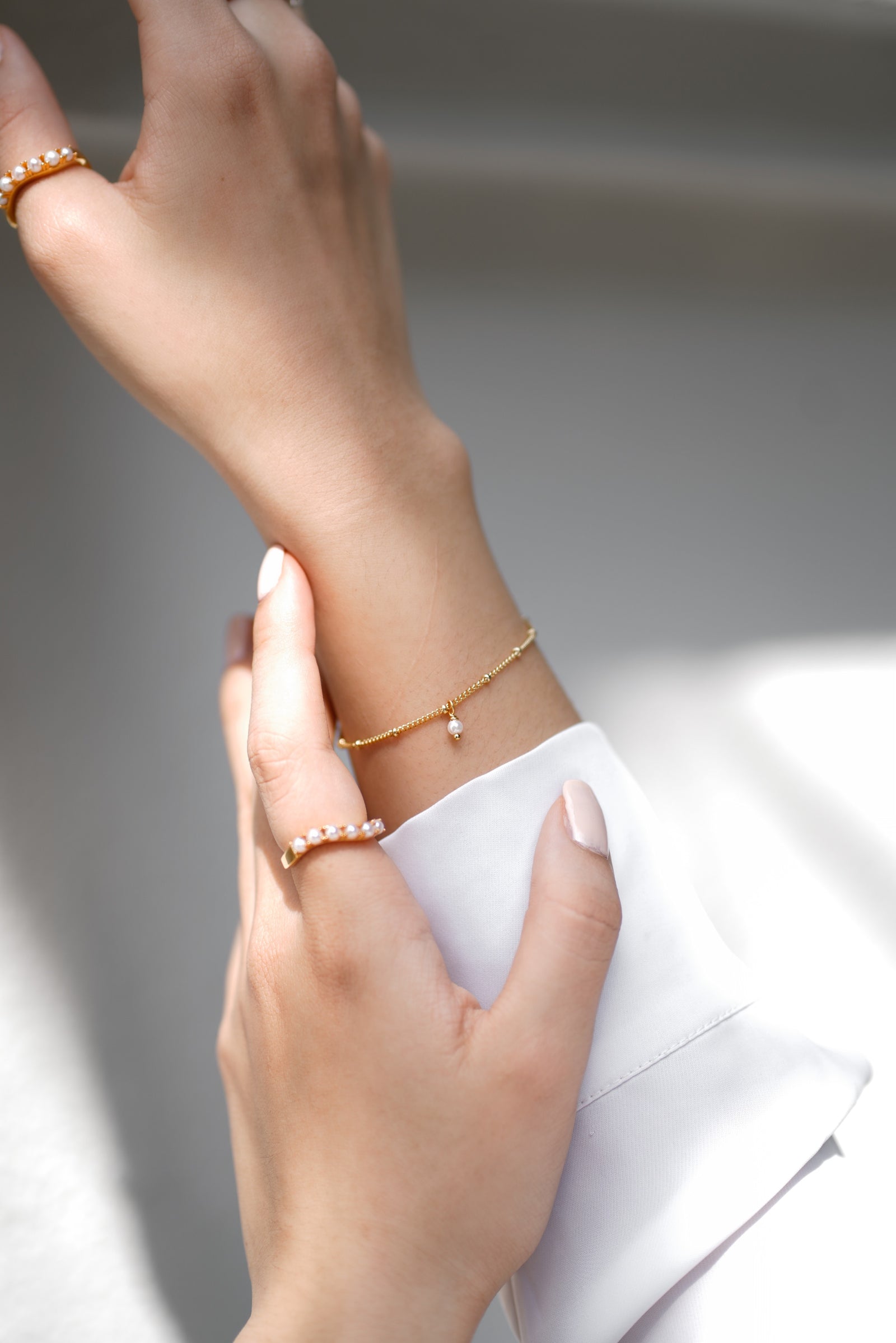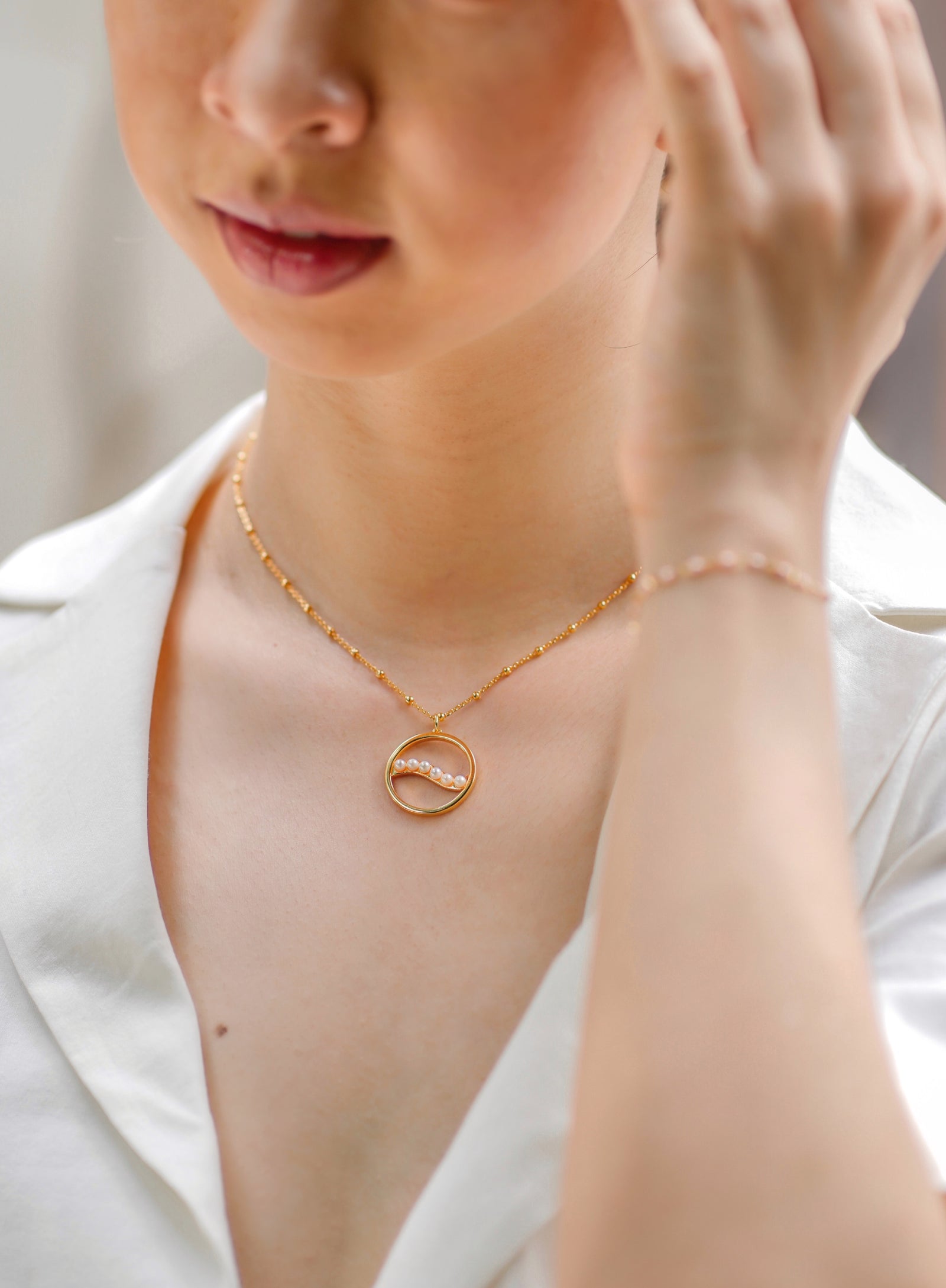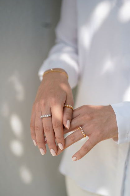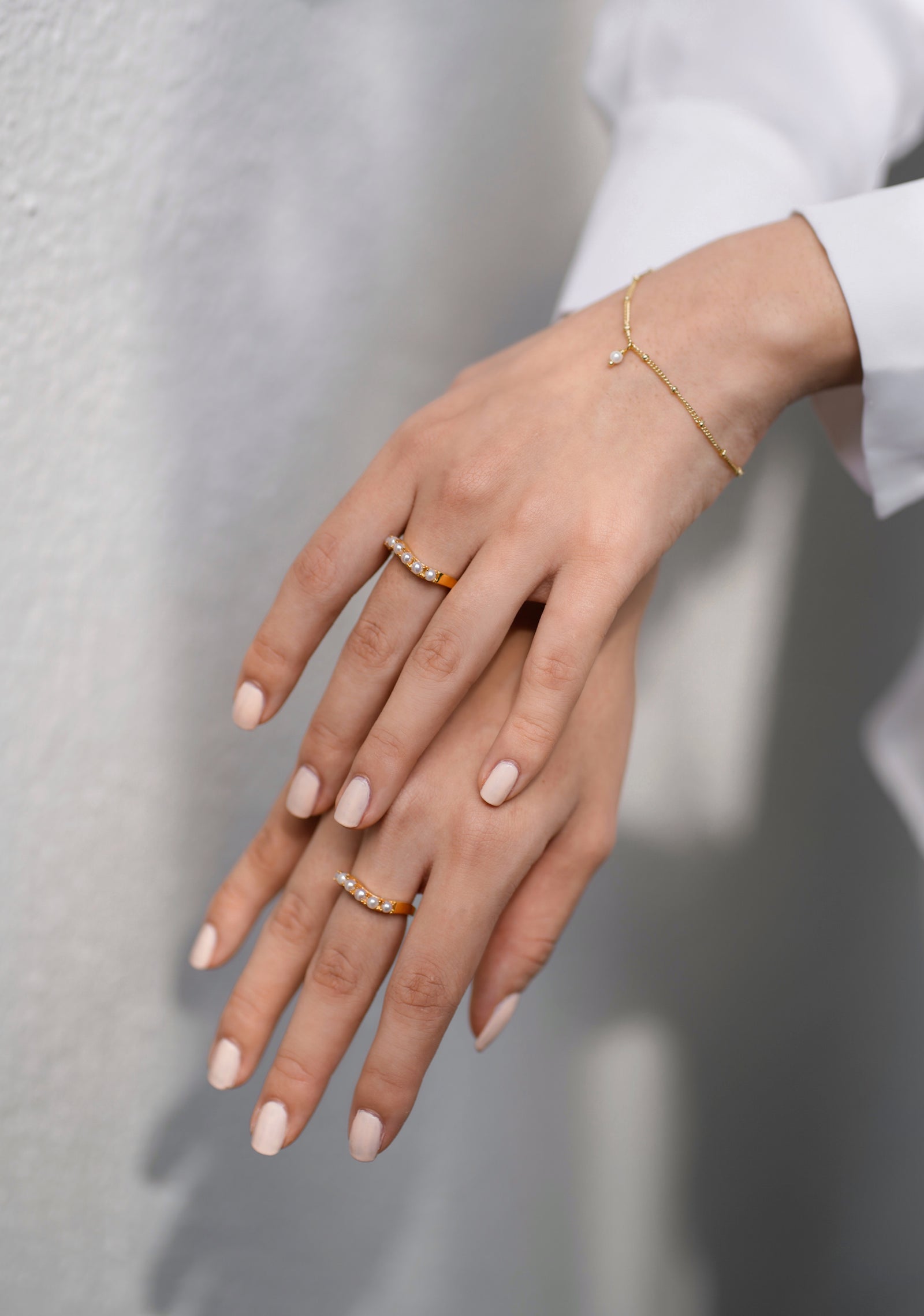 Designed with meandering lined pearls to signify the flow - a reminder to take things slowly and that the best things come with time. Just go with the flow.